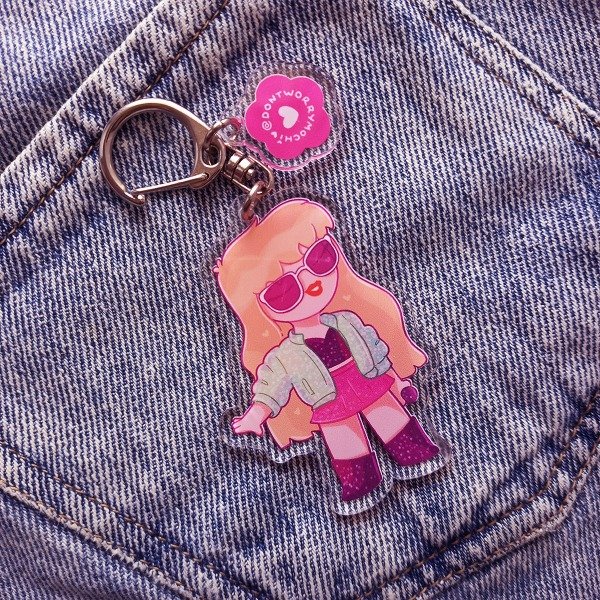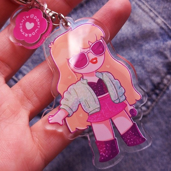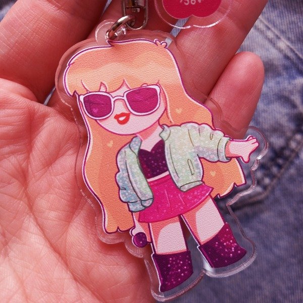 Llavero de acrílico ilustrado con Taylor Swift en su era 1989.
