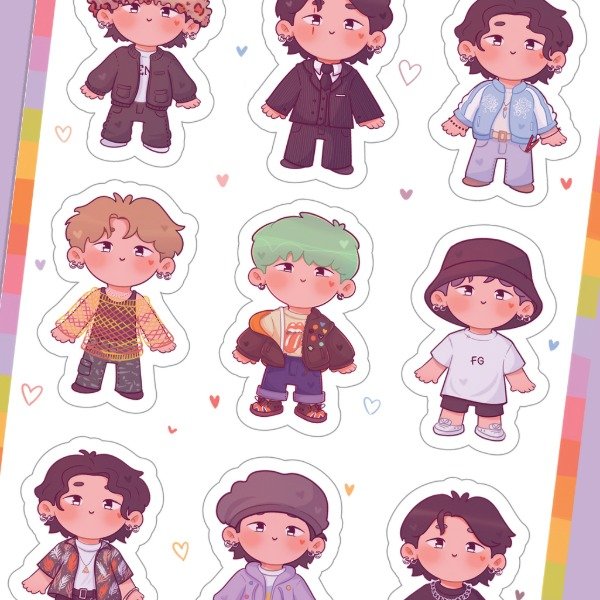 Plancha de stickers troquelados ilustrados con SUGA de BTS!