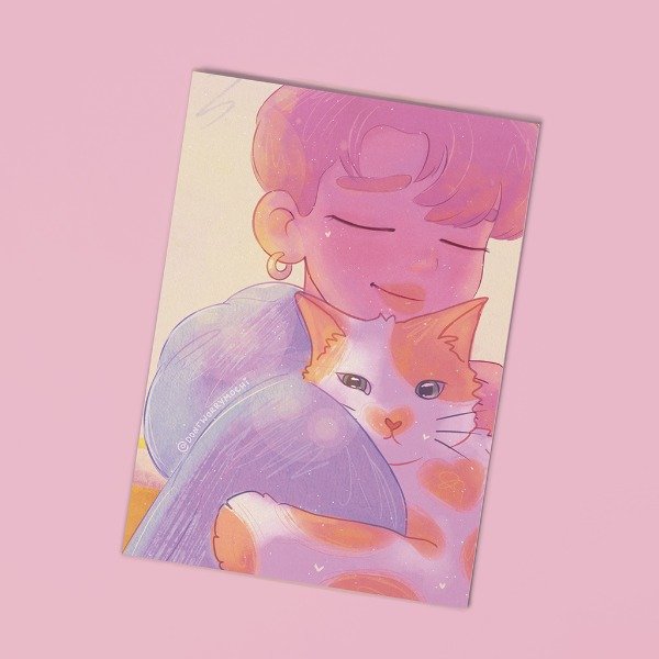 Postal ilustrada con Jimin de BTS.