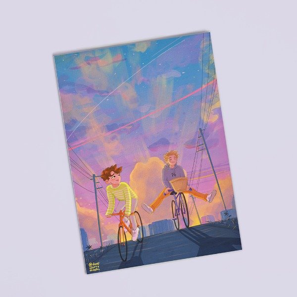 Postal ilustrada con Jimin y Namjoon de BTS.